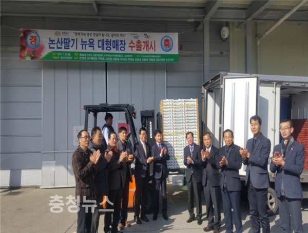 논산시(시장 황명선)는 지난 28일 논산농협 북부지점에서 ‘2019년 논산딸기 대미첫수출 선적식’을 갖고 대미수출의 시작을 알렸다.