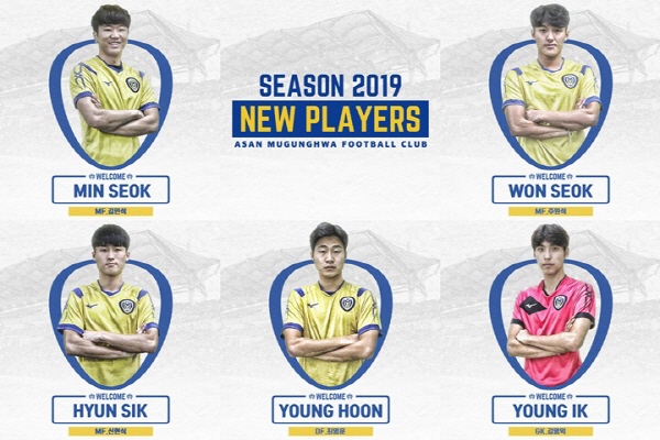 아산무궁화프로축구단(구단주 오세현)이 새로운 미드필더 자원으로 김민석(21), 주원석(23), 신현식(21)을 점찍었다.