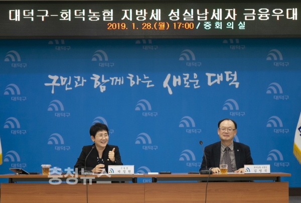 대덕구(구청장 박정현)는 지난 28일 회덕농협(조합장 김영국)과 업무협약을 체결하고, 오는 2월부터 지방세 성실납세자에 대한 금융우대 서비스를 확대 실시한다고 밝혔다.