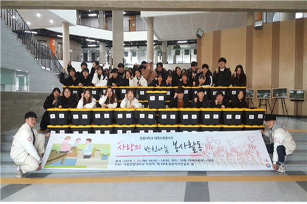 국립 한밭대학교(총장 최병욱)가 지난 28일부터 29일까지 이틀간 민족 대명절인 설을 맞이하여 도움의 손길을 필요로 하는 지역 어르신들과 사회복지시설, 유성구 내 어려운 이웃(50세대)을 찾아가 따뜻한 정을 나누어 화제가 되고 있다.