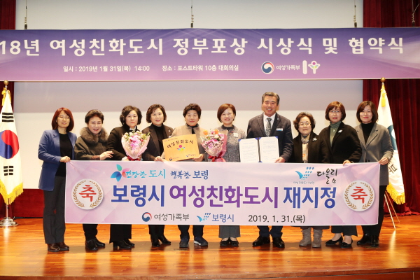 충남 보령시는 31일 오후 서울 포스트타워에서 열린 여성친화도시 정부포상 시상식 및 협약식에서 여성친화도시 협약에 서명하며 오는 2023년까지 여성친화도시로 재지정 됐다고 밝혔다.
