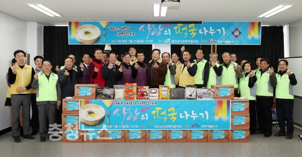태안군 사회복지협의회(회장 오병영)는 지난 31일 태안읍 사회복지협의회 사무실에서 가세로 군수와 한국서부발전(주) 관계자, 관내 사회복지기관장, 사회복지협의회 임원 및 회원 등 50여 명이 참여한 가운데 ‘사랑의 떡국 나누기’ 행사를 마련했다.
