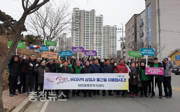 이번 캠페인은 활기찬 설 명절 분위기 조성으로 침체된 지역경제를 활성화하기 위한 것으로 행사 참가자들은 피켓을 들고 홍보물 등을 배포하며 △설 명절 기간 지역상점 집중 이용 △태안읍에서 생산한 농·수산물, 물품 적극 구매 등에 동참해줄 것을 당부했다.