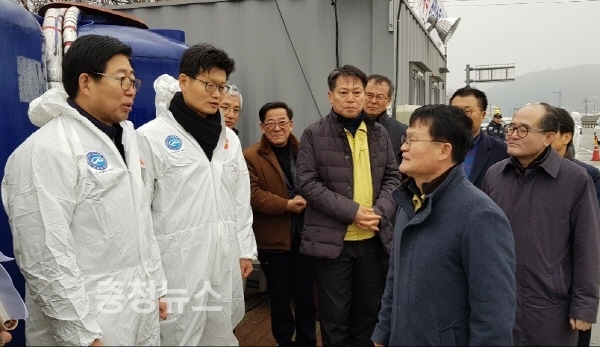 이어 양승조 도지사와 함께 공주시 우성면 목천리에 있는 거점소독시설을 방문하여 구제역 방역현장을 점검하고 현장소독 활동시 발생하는 애로사항을 청취와 설 연휴에도 충남축산산업과 축산농가 보호에 최선을 다하는 방역종사자들을 격려했다.