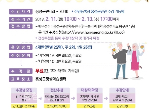 11일부터 13일까지 홍성군평생학습센터, 온라인으로 접수
