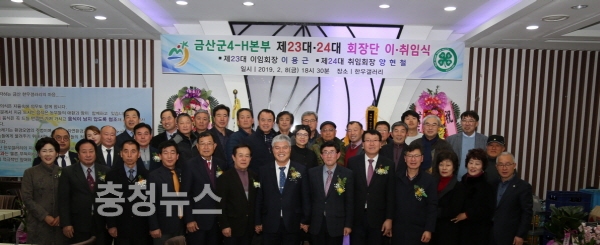 충남 금산군4-H본부회장 이․취임식이 지난 8일 한우갤러리에서 문정우 금산군수 등 내외 귀빈 4-H 회원 등 100여명이 참석한 가운데 개최됐다.