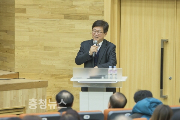 학교-교육청이 함께 하는 새학년 준비 통합 워크숍에서 최교진 교육감이 인사말을 하고 있다.