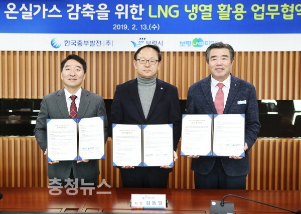보령시는 13일 한국중부발전(주) 컨퍼런스홀에서 김동일 시장과 박형구 한국중부발전 사장, 강신덕 보령LNG터미널 대표 등 관계자가 참석한 가운데 LNG 냉열 활용 업무협약을 체결했다.