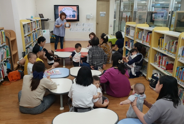 유아프로그램으로 진행되는 북스타트 ‘아가랑 부모랑 책놀이‘는 3개월~18개월, 19개월~35개월 유아와 동반가족 각 15개팀을 대상으로 그림책을 읽은 후 다양한 책놀이 활동을 연계해 아이의 창의력, 상상력 발달은 물론 아이와 부모 간 애착형성을 유도한다.