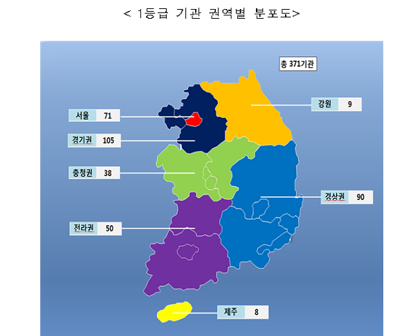 충남에서도 12개 의료기관이 1등급을 받았다. 상급종합병원은 단국대의대 부속병원과 순천향대 부속 천안병원 2곳이, 종합병원급은 아산충무병원·천안충무병원·천안의료원이 1등급의료기관 명단에 들었다. 의원급에서는 연세허수범내과의원·원진호내과의원·이기천내과의원·이성준내과의원·제일조은내과의원이 선정됐다. 세종은 강내과의원과 이내과의원 두 곳이 1등급을 받았다.