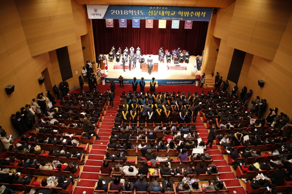 선문대학교(총장 황선조)는 2018학년도 전기 학위수여식을 14일 선문대 아산캠퍼스 원화관 아트홀에서 개최했다.