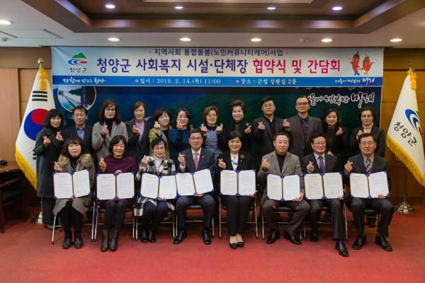 충남 청양군(군수 김돈곤)이 지역사회 통합돌봄(커뮤니티 케어) 선도사업의 원활한 추진을 위해 군내 사회복지시설 20곳과 상호협력 협약을 맺었다.