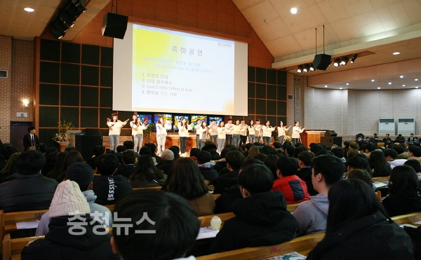 목원대 성악‧뮤지컬학과 재학생들이 신입생을 위한 축하공연을 펼치고 있다.