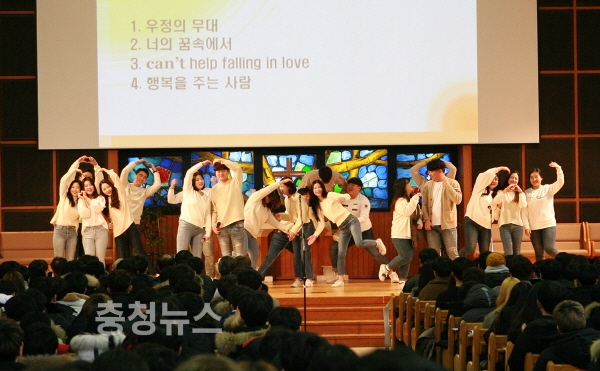 목원대 성악‧뮤지컬학과 재학생들이 신입생 환영을 위해 준비한 공연을 선보이고 있다.