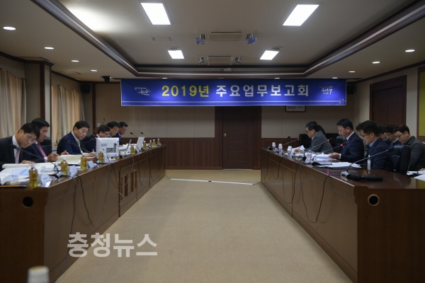 논산시(시장 황명선)는 지난 18일 시청 상황실에서 부시장을 비롯해 실국장 및 과장, 정책관과 전문가들이 참석한 가운데 2019년 주요업무보고회를 개최했다.