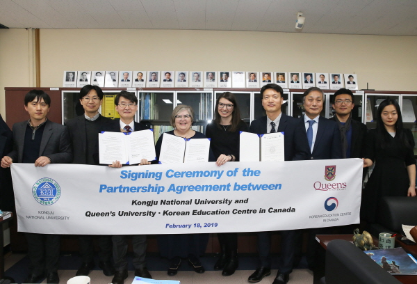 캐나다 한국교육원장(원장 이병승) 및 퀸즈대학교 사범대학(학장 Rebecca Luce-Kapler)이 공주대학교 사범대학을 방문하여 이병기 사범대학장, 전대열 부학장을 비롯한 김훈호 사범대학 해외교육봉사 지도교수 등이 배석한 가운데 협약을 체결했다.