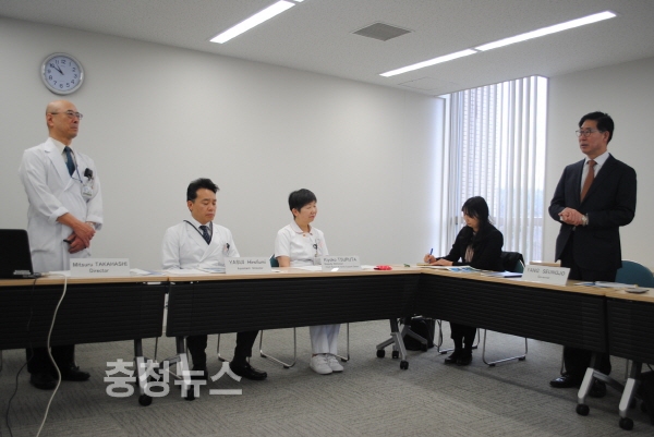 일본에 출장 간 양승조 충남도지사는 19일 시즈오카현립암센터 방문했다. 이곳에서 양 지사는 도내 공공의료원 문제점을 털어놓으며 활성화 방안을 모색했다.