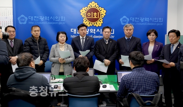 시의원들은 이날 의회 기자실에서 간담회를 갖고 "한화 대전공장은 지난해 5월에도 폭발사고가 발생해 5명이 숨졌다. 당시 노동부가 실시한 특별근로감독에서 486건의 산업안전보건법 위반 행위가 적발됐다"며 "이후 한화가 내놓은 대책은 유명무실했다. 부실 그 자체였다"고 지적했다.