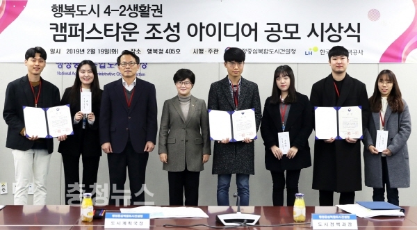행복청(청장 김진숙)은 19일(화) 세종시 집현리(4-2생활권) 내 조성되는 ‘신개념 캠퍼스타운 아이디어 공모전’의 우수작품 시상식과 작품 설명회를 개최했다.