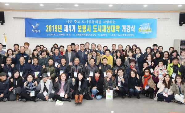 충남 보령시는 지난 19일 저녁 보령문화의전당 소강당에서 김동일 시장과 김항집 학장, 도시재생 대학 참가자 및 관계자 등 100여 명이 참석한 가운데 도시재생의 발전을 도모할 제4기 도시재생대학 개강식을 갖고 본격 운영에 나섰다.