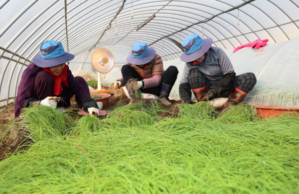 원북면 반계리 주민들이 봄의 전령사로 손꼽히는 태안군의 대표 특산물 달래를 수확하고 있다.