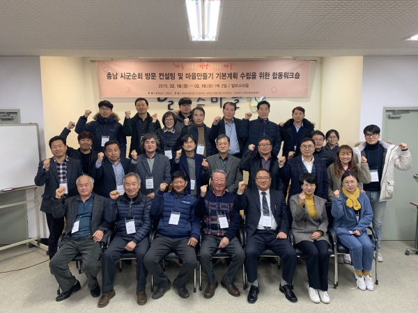 충남 청양군(군수 김돈곤)이 미래형 주민자치마을 만들기를 위한 공동학습활동을 본격 시작했다. 지난 18∼19일 정산면 천장리 알프스마을에서 진행된 ‘마을 만들기 기본계획 수립을 위한 합동워크숍’을 통해서다.