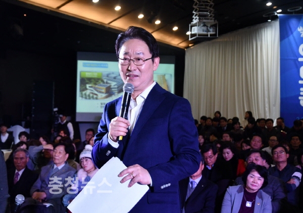 더불어민주당 박범계 국회의원(대전 서구을)이 20일 2019 의정보고회(안녕하세요! 박범계 입니다)를 열고 세를 과시했다.