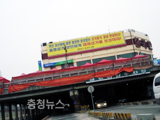 관련 공무원 A씨에 따르면 "보상 평가 방법과 보상업무와 관련, 홍명상가는 대지 권리가 없고, 35년간 사용한 건물이 노후하고 안전을 담보하기 어려운데다가 감정평가사도 상인들이 직접 선임해 일부에서 제기하고 있는  대전시와 관련성은 없다고 밝혔다.