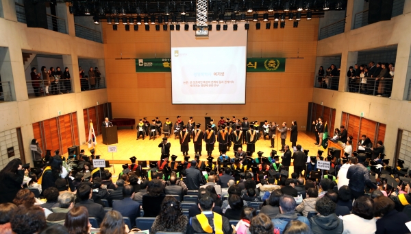 이종서 총장과 각 보직교수 및 이장우 국회의원 등이 참석한 가운데 진행된 이번 학위수여식은 학사 1899명과 석사 264명, 박사 84명 등 총 2247명이 학위를 받았다.