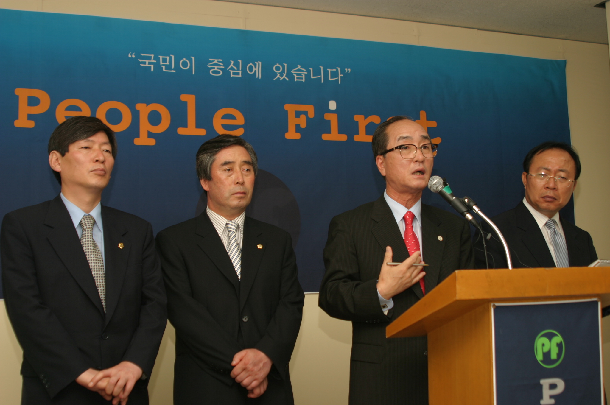 신당창당과 관련 심대평 충남도지사가 지난 7월 1일 대흥동 정치아카데미 강의장에서 기자회견을 가졌다. 이날 심 지사는 “6월 중 새로운 정치결사체가 출범했다. 오늘을 기점으로 ‘People First Academy(PFA)’라는 정치아카데미로 새로운 도약을 하게 됐다”며 “생활정치를 기본으로 한 정책개발과 연구활동에 주력하는 조직을 꾸려나갈 계획”이라고 말했다. 국민을 중심으로 하는 정치 패러다임을 가지고 정책연구 시스템을 갖춰나가겠다는 의지다.