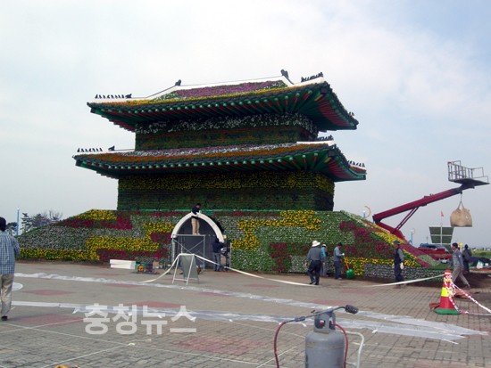 조직위 관계자는 “숭례문 복원에 일조하고자 하는 마음에서 밤낮으로 작업 인부들과 함께 작업해온 작품이 마침내 완성돼 기쁘다”며 “안면도꽃박람회장을 찾는 관람객들에게 영원히 기억되길 바란다”고 말했다.