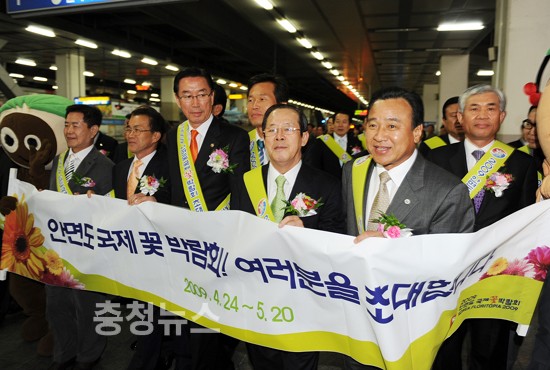 이 지사는 "서울시가 꽃박람회의 성공 개최에 힘을 보태기로 해 천군만마를 얻은 느낌"이라며 "충남도도 서울시가 주관하는 각종 행사 때 도민들의 참관과 학생들의 현장체험을 적극 지원하겠다"고 약속했다.