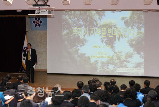 지진호 건양대 관광학과 교수(평생교육원장)가 23일 유성구청 민방위교육장에서 구청공무원들을 대상으로 열린 ‘유성대표축제의 활성화방안’ 이란 특별강연에서 ‘축제가 지역을 변화시킨다’ 란 주제발표를 통해 이같이 주장했다.