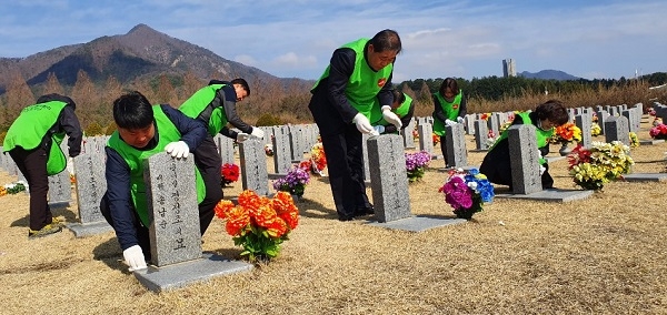 이날 건협 전 지부 직원 및 건협 어머니사랑봉사단 200여 명이 참여해 묘역 주변 쓰레기 줍기, 잡초 제거 등 환경 정화 활동을 진행했다.
