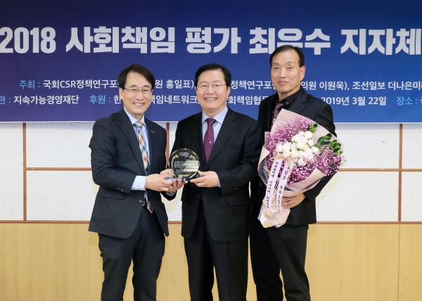장종태 서구청장이 지난 22일 국회의원회관에서 진행된 ‘2018 대한민국 광역 및 기초 지방자치단체 사회책임지수 평가’ 에서 대전 5개 자치구 가운데, 1위를 차지해 최우수상을 수상했다.