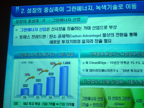 이재환 이사장은 또 "저탄소 녹색성장 정책은 이명박 대통령이 슬로건으로 막연하게 내 세운게 아니라 21세기 대한민국의 성장동력인 저탄소 녹색 성장 정책은 다른나라보다 서둘러 시행하려는 것 있다"라고 소개했다.
