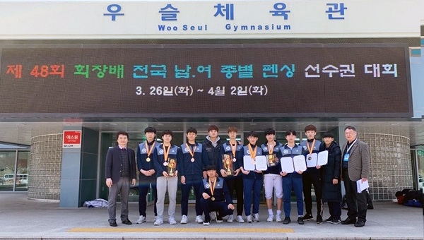 대전대학교 펜싱부(감독 도선기)가 지난달 26일 전남 해남 우슬체육관에서 개막된 ‘제 48회 회장배 전국 남·녀 종별 펜싱 선수권 대회’에서 남자 사브르와 에뻬에서 총 3개의 메달(금메달 1, 동메달 2)을 목에 거는 등 우수한 성적으로 대회를 마감했다.