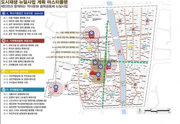 이번에 공주시가 선정된 ‘제민천과 함께하는 역사·문화 골목 공동체 뉴딜사업’은 중학동 인근 역사 자원을 최대한 활용해 공공기능 회복과 역사·문화·관광 연계를 통한 중심상권의 활력을 증진하고 지역 일자리 창출과 원도심 활성화를 목표로 추진하게 된다.
