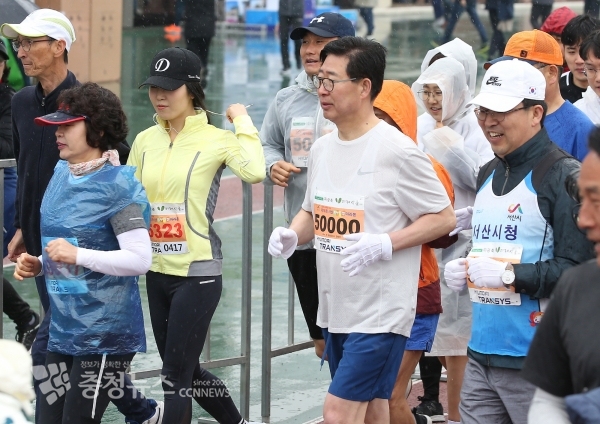 양승조 지사가 14일 서산 종합운동장에서 열린 제18회 서산 뜸부기쌀 마라톤대회에 참석했다.