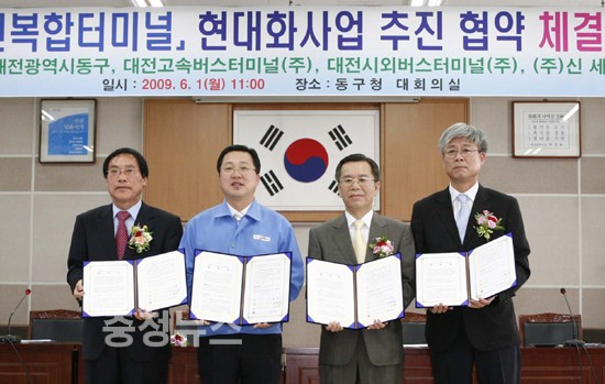 이장우 동구청장은 “이번 협약으로 그동안 대전 교통의 중심이었던 용전동 터미널이 쾌적한 환경의 다양한 서비스를 제공할 수 있는 복합터미널로 새롭게 태어나 대전 발전을 이끌게 될 것”이라고 말했다.