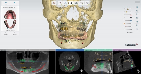 위의 장비들을 통해 얻은 3차원 정보는 즉시 컴퓨터로 전송돼 수술을 가장 안전하고 성공적으로 마칠 수 있도록 ‘모의수술’ 단계를 거치게 된다. 특히 이 모의수술 단계에서 최종보철물이 제작되며, 이에 따라 임플란트 식립 기간도 6개월에서 1일로 크게 줄게 된다는 것이다. 예전에는 임시치아를 수술 당일에 끼우고 수개월 뒤 다시 내원해 최종보철물로 교체했다고 한다.