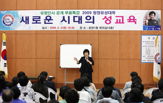이날 첫 강좌로 구성애 푸른 아우성 대표가 ‘새로운 시대의 성교육’ 이란 주제로 특강을 펼쳤으며 김준호.손심심 국악인, 박동규 교수 등 7인의 릴레이 초청 강연회가 매주 화요일 오후 7시 30분에 마련된다.
