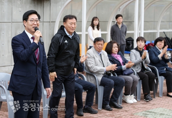 양승조 충남도지사는 26일 천안 서북구 소재 축구센터에서 열린 보건복지부장관배 2019년 전국 사회복지사 축구대회에 참석, 행사 개최를 축하했다.