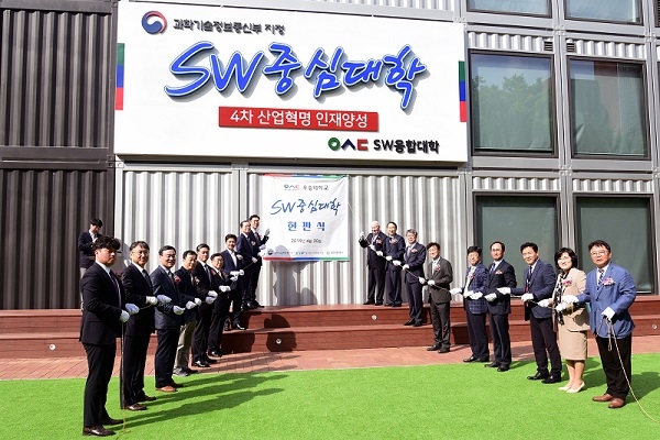 우송대학교(총장 존 엔디컷)는 30일 오후 우송관 4층 강당 및 엔디컷 빌딩에서 4차 산업혁명을 이끌어갈 글로벌 인재양성의 시작으로 ‘소프트웨어(SW) 중심 대학’ 현판식을 개최했다.
