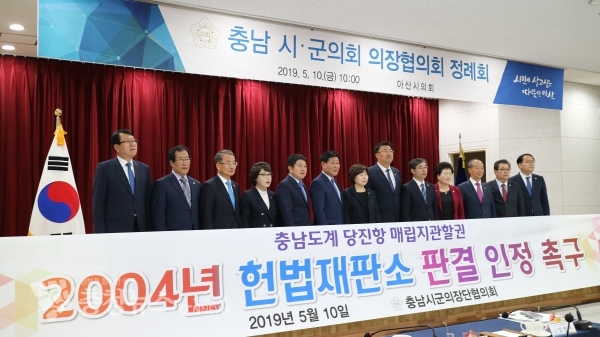협의회는 10일 천안아산상생협력센터에서 개최된 5월 정례회의에서 당진시의회가 제안한 ‘충남도계 당진항 매립지 관할권 2004년 헌법재판소 판결 인정 촉구 성명서’를 채택했다.