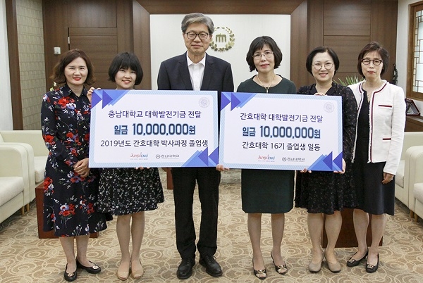 충남대학교 대학원 간호학 박사 졸업생과 간호대학 16기 졸업생들이 간호학과 발전을 위해 써 달라며 발전기금을 기부했다.