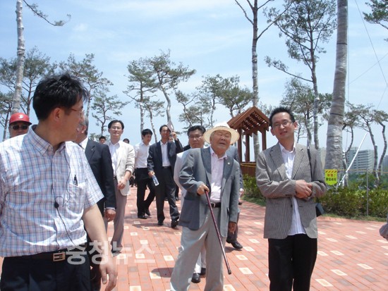 ▲ 이인구 명예회장이 공원을 소개하고 있다.