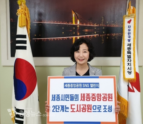 자유한국당 세종시당은 28일 세종중앙공원 2단계 사업을 모든 시민들이 바라는 도시공원으로 조성할 수 있도록 염원과 의지를 모으는 ‘SNS챌린지 캠페인’을 시작한다.