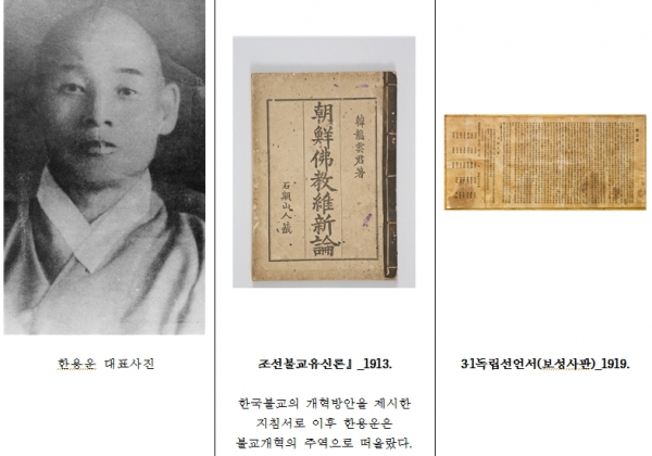 1913년 개혁방안을 제시한 지침서로 『조선불교유신론朝鮮佛敎維新論』을 발행하였고 난해한 불경의 연구와 주해, 승려교육을 위한 교재와 불교잡지 『유심惟心』 간행 등을 통해 불교 근대화와 대중화에 기여하였다.