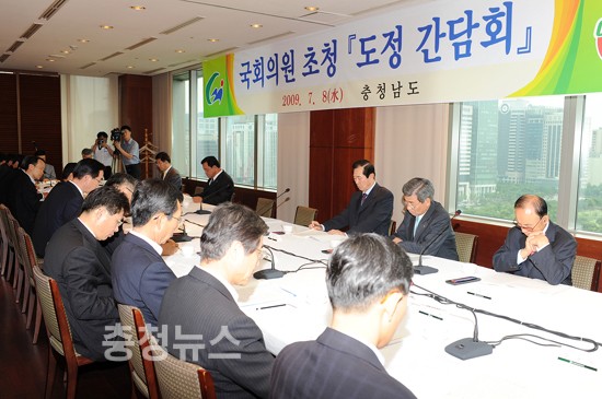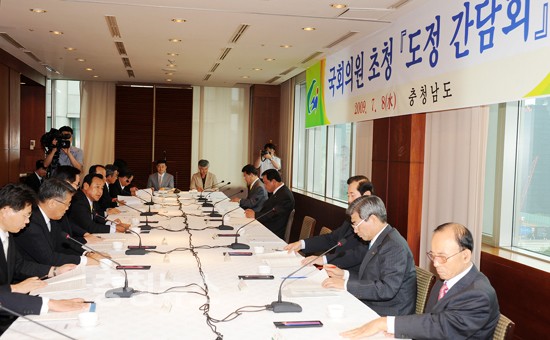 이완구 충청남도 지사는 8일 내년도 정부예산 확보와 도정의 당면 현안에 대해 정책적 지원과 협조를 구하기 위해 지역 국회의원들을 초청, 도정간담회를 가졌다.